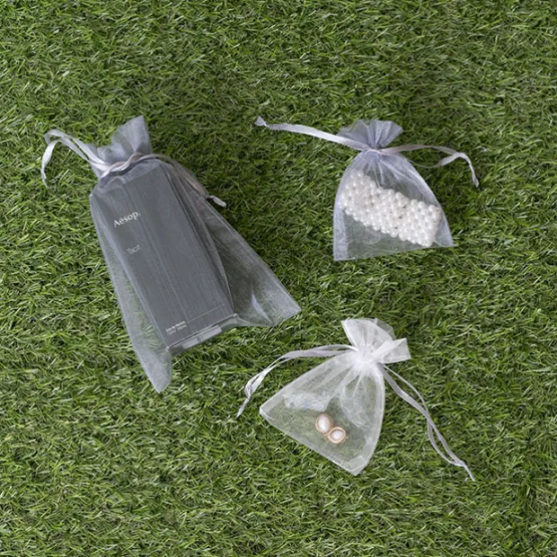 With a silver satin ribbon draw string closure, they will keep your item secure.