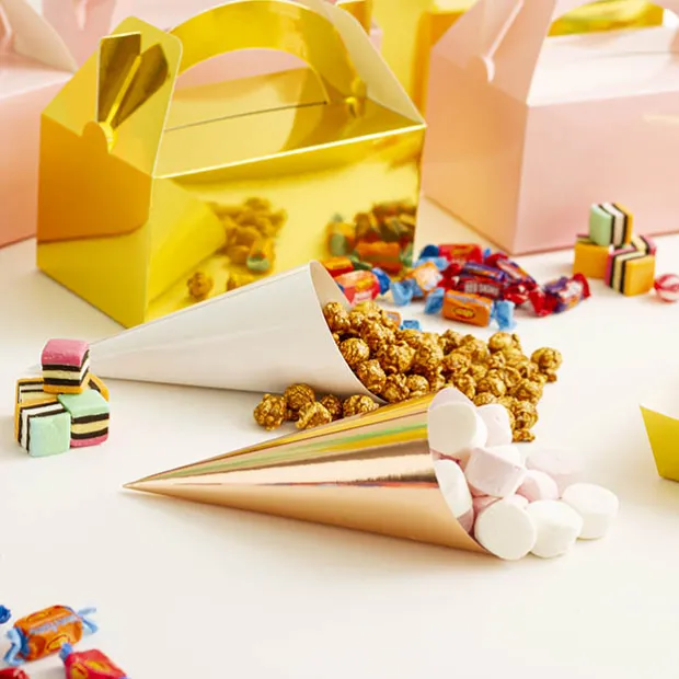 Sold in packs of 20, they come flat-packed with included tape for easy assembly. Once made up, each cone measures 24cm tall and 9cm in at their widest point.