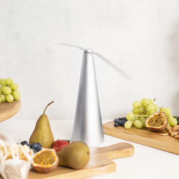 This chemical-free fly repellant fan has soft propeller blades which are harmless to touch, making it safe around children. The blades will stop if you interrupt it while spinning and will start up again once your hand is removed. The blades have holograms that create light and the kind of movement which keeps flies away. Place it on your buffet tables, picnic blanket, or alfresco area.