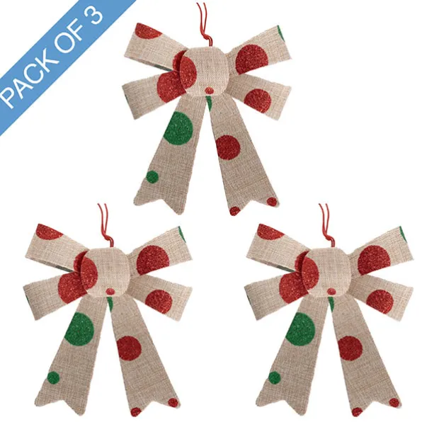 Pre-Made Bow Fabric Top Xmas Spots Pack 3 Natural (9*12cm)