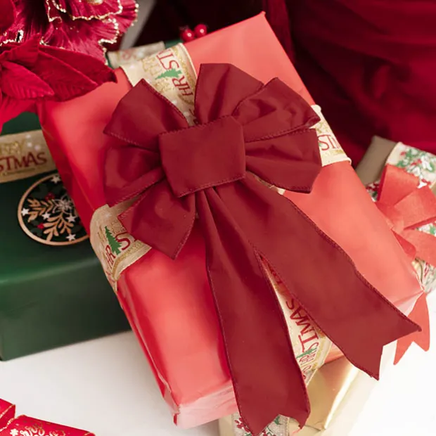This traditional velvet bow has a sewn-wired edge, which gives it a polished finish. Featuringeasy-to-use tie attachments, this bow provides a simple way to add a homey festive touch to your gifts and decor this holidayseason.