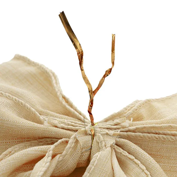 This bow has a sewn wired edge, giving it a polished finish and allowing you to style as needed. Featuring easy-to-use tie attachments, this bow offers a convenient way to produce perfect, homey bows for your gifts and decor.