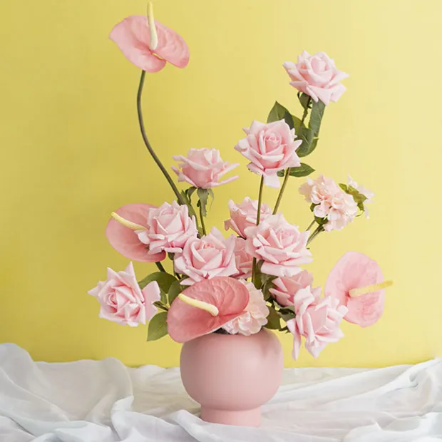Our real touch Anthurium Flower in vibrant pink colour is very lifelike and can be used in any arrangement to heighten any room or space.
