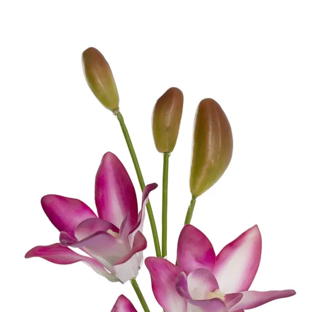 Designed with wired stems for easy shaping, this orchid is lifelike in form and texture. Use this flower to create stunning arrangements or to add a vibrant, exotic charm to your space.