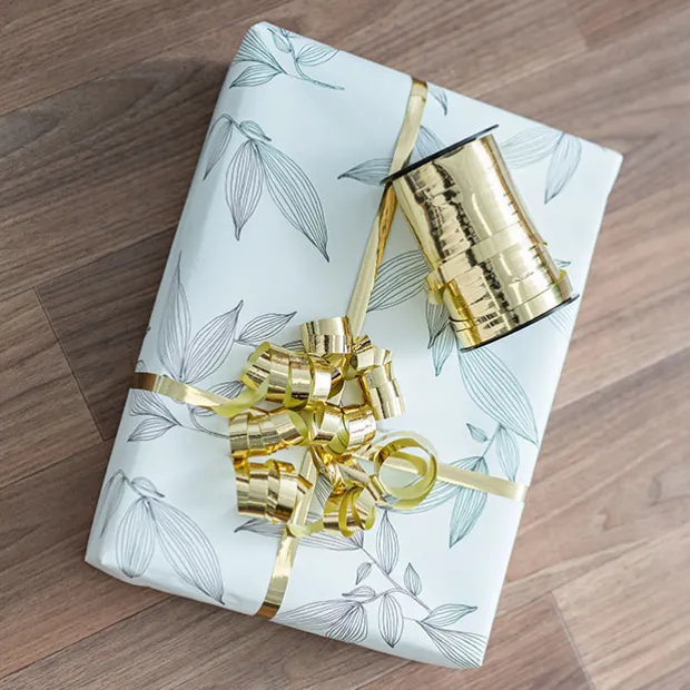 This ribbed textured ribbon has a matte finish and is made from a thin, flexible material. It can be easily curled with scissors.
