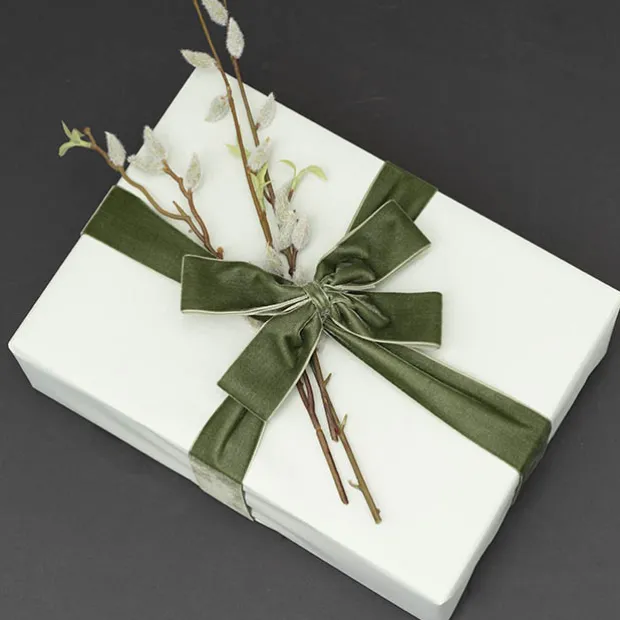 Ribbon Premium Plush Velvet Woven Edge Moss (38mmx20m)