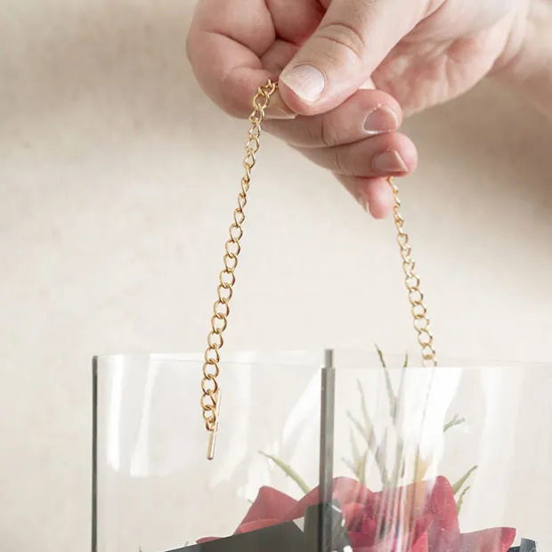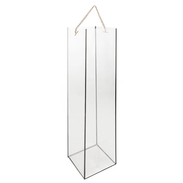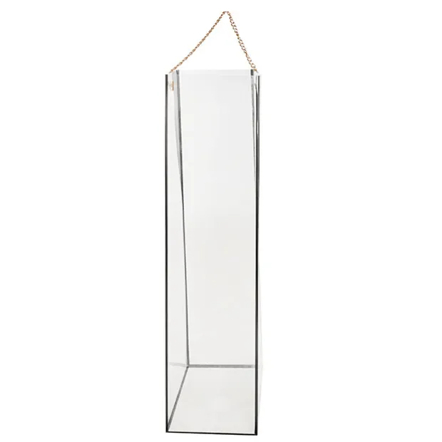 This is a lovely square cylinder for flowers, confectionary and general packaging ideas for Valentine’s Day. You can use with clear cellophane shred, coloured flower wrap, crystal rocks or other decorative pebbles in the base. Beautifully displays a single rose or flower of your choice. Add a gift tag and bow and you have a perfect gift.
