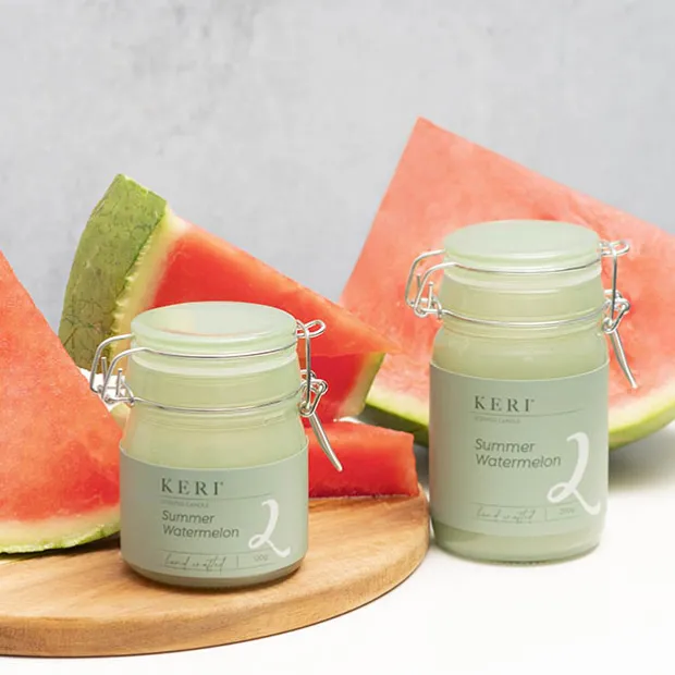 Enjoy the refreshing aroma of summer watermelon with our Honey Jar Candle. Made from natural soy blend wax, this candle emits a sweet, juicy fragrance in a charming honey jar that can be reused for tealight candles, DIY candle making, or as a stylish storage solution. Perfect for adding a touch of summer to your home decor, ideal for Bomboniere or party favors, and vibrant for gift hampers.