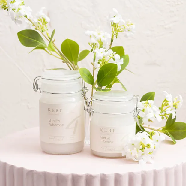 Our larger Vanilla Tuberose Honey Jar Candle offers extended indulgence in its creamy, floral aroma. Made with natural Palm blend wax, this candle enriches your environment and comes in a luxurious honey jar that can be reused for holding tealight candles, engaging in candle DIY, or storing items. An excellent choice for home decor, perfect for Bomboniere or party favors, and a prized addition to gift hampers.