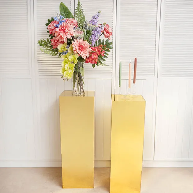 Use these plinths to showcase products, décor, or floral arrangements with a sleek and luxurious touch. These plinths can also be personalised with decorative stickers and non permanent markers like chalkbaord or whiteboard markers.