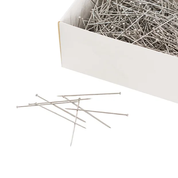 Each pin is 45mm long. The box has approximately 1950-2000 pins and weighs around 250 grams.