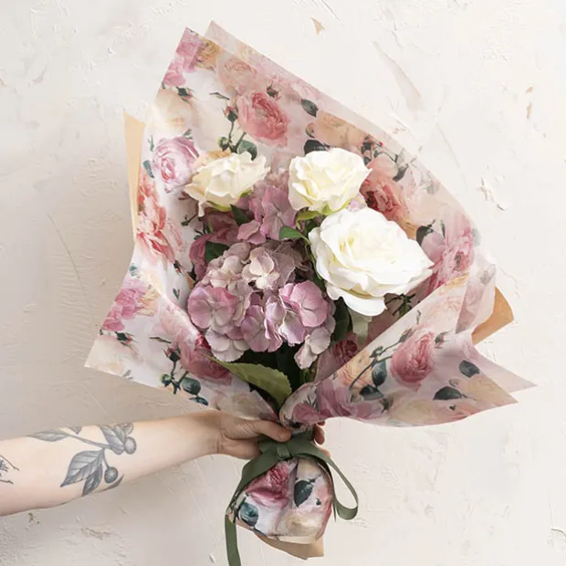 Tissue Paper Luxe Floral Pk100 28gsm Pink White (50x75cm)