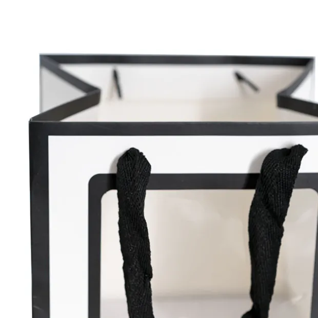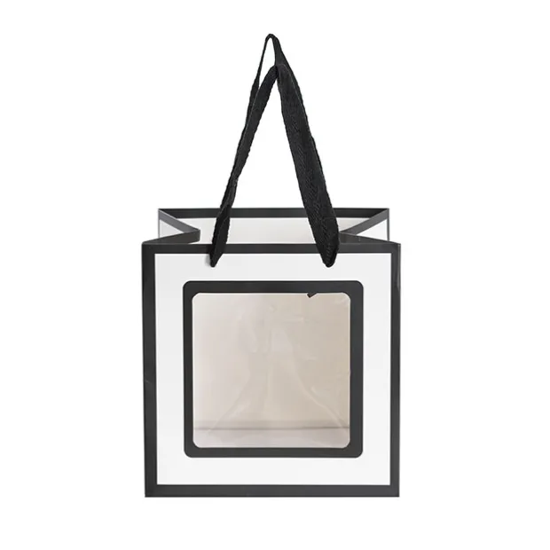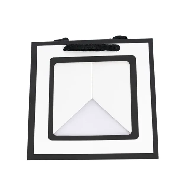 Measuring 25cm in length, width and height. Clear window measures 16cm x 16cm. Made from 400gsm kraft paper.