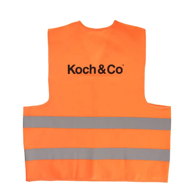 This vest is a High-Visibility Safety Garment for Day or Night use, to be worn over clothing. This Orange vest is XLarge 66cm x 70cmHigh, and features the Koch & Co. logo on the back.