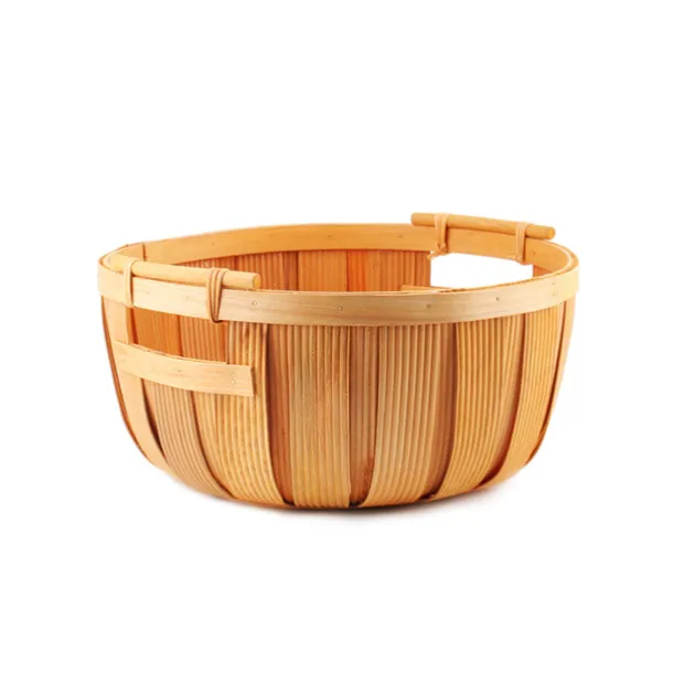 Made from thin sliced natural wood chip making it lightweight. Basket measures 34.5cm in diameter and 16cm in height. Base measures 23cm in diameter. Available in 2 sizes and 3 colours.